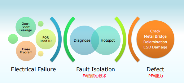 详解对电性失效分析中的热点技术与纳米探针技术的操作流程、相关设备及其机理,使企业能够通过电性失效分析,定位出失效单元的物理地址,并分析其失效机理、找到解决方案,在后续的制备过程中进行改进,提高产品良率。